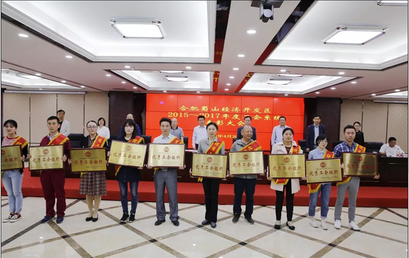 2018年4月20日,合肥蜀山經濟開發區召開2015年-2017年度工會系統表彰大會,我公司工會組織榮獲蜀山經濟開發區工會“優秀工會組織”稱號